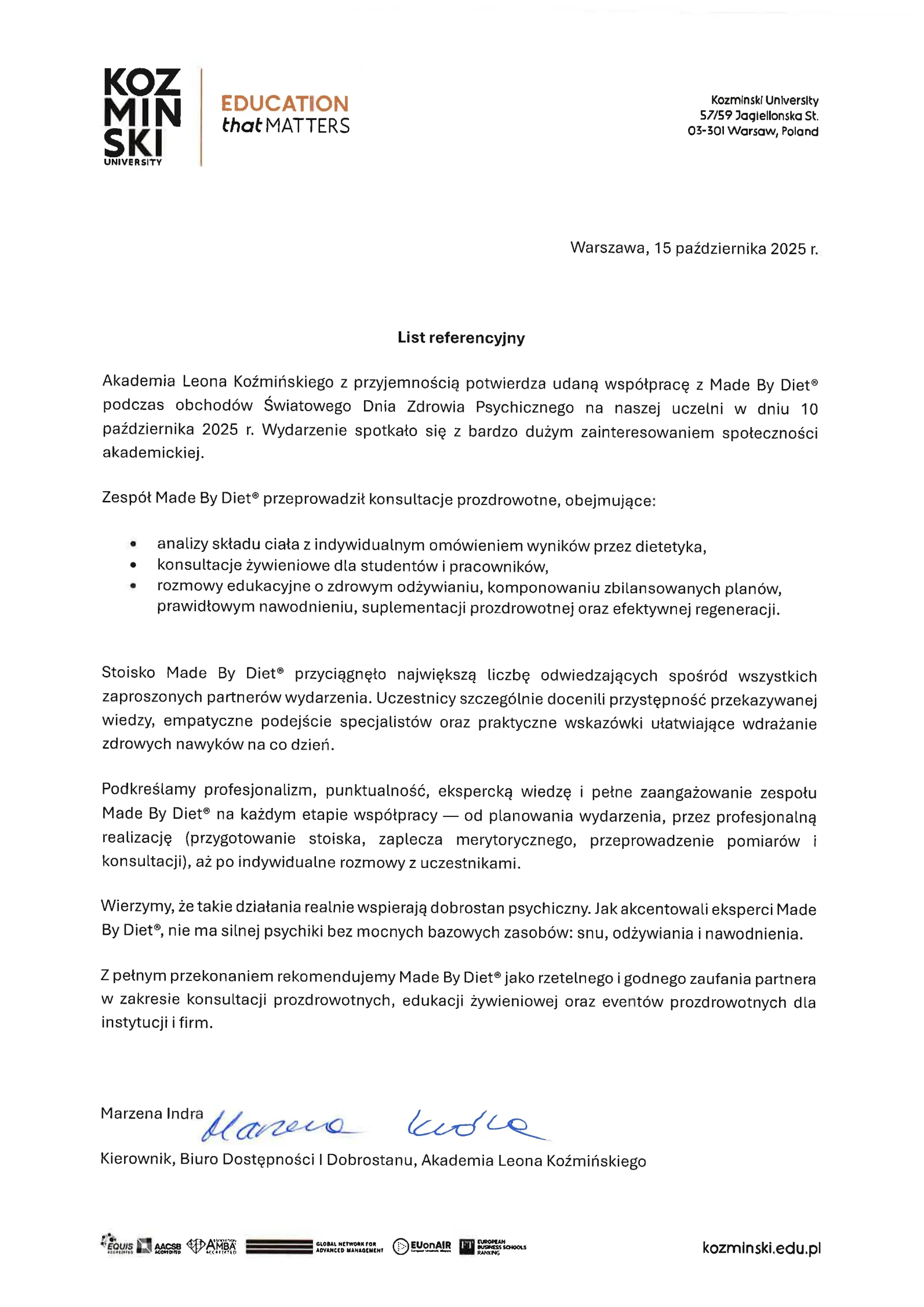 Made By Diet® to sprawdzony partner w zakresie programów wellbeingowych i edukacji zdrowotnej w firmach. Wellbeing w Twojej firmie to realna inwestycja w silny, zdrowy i zaangażowany zespół.